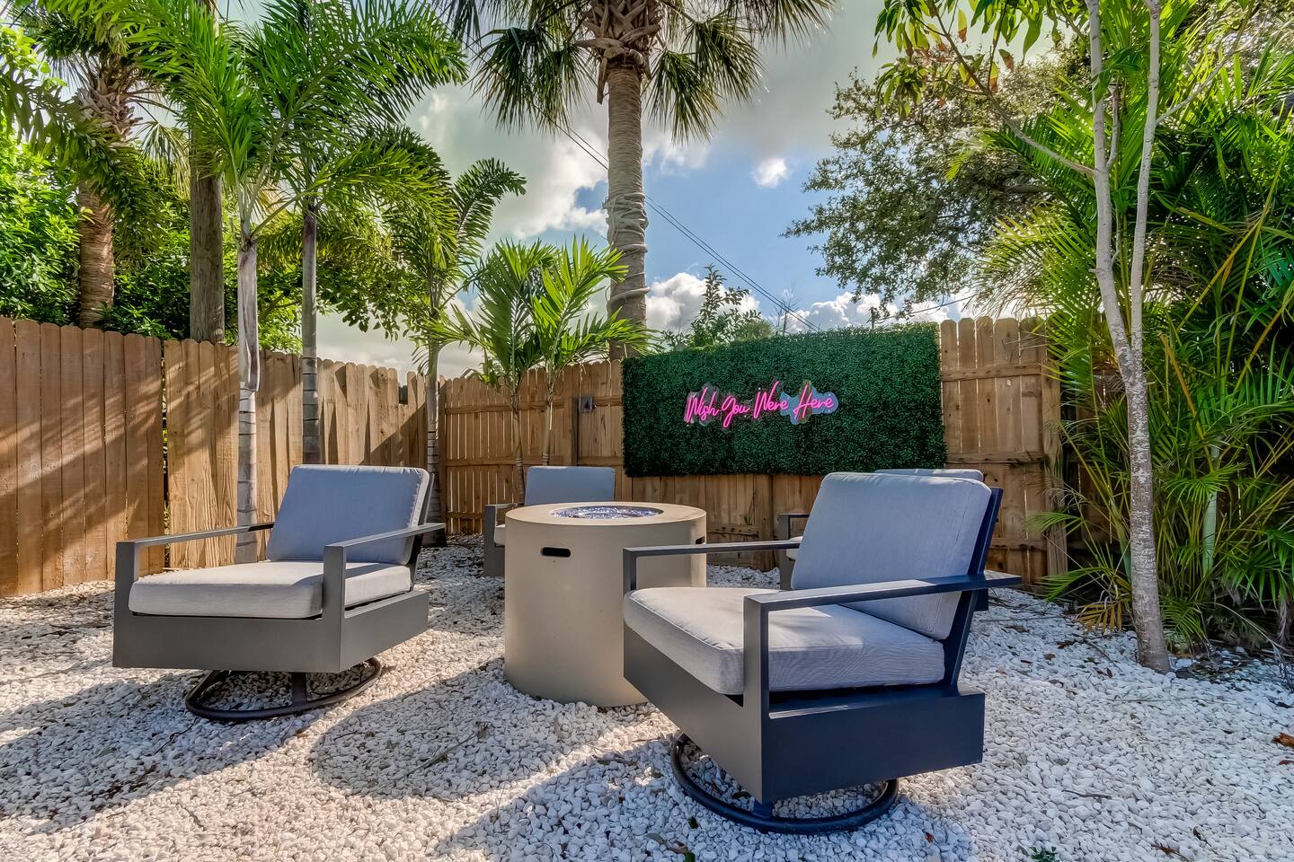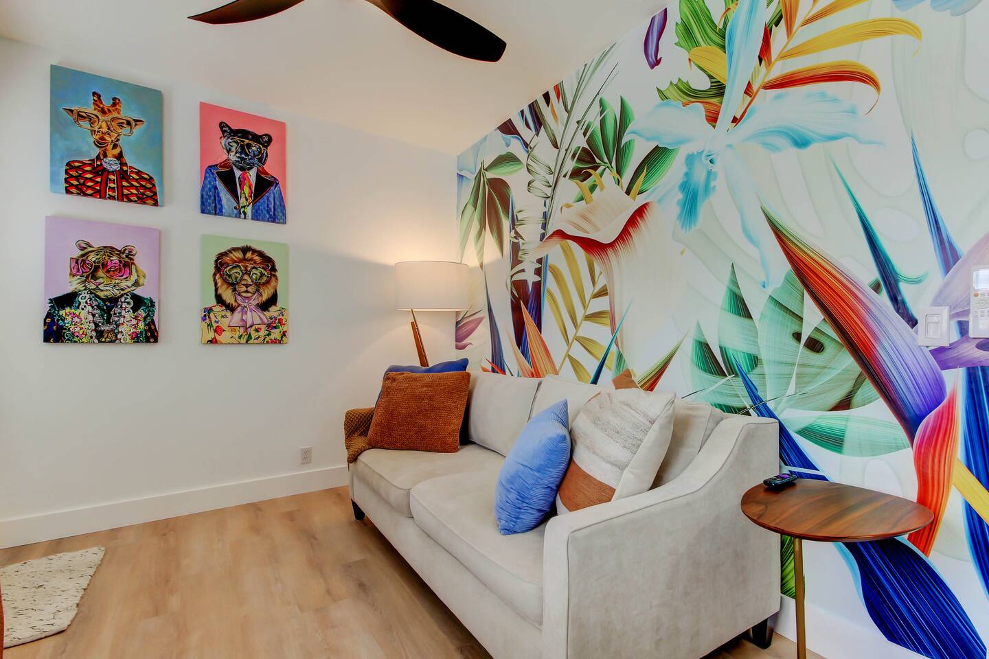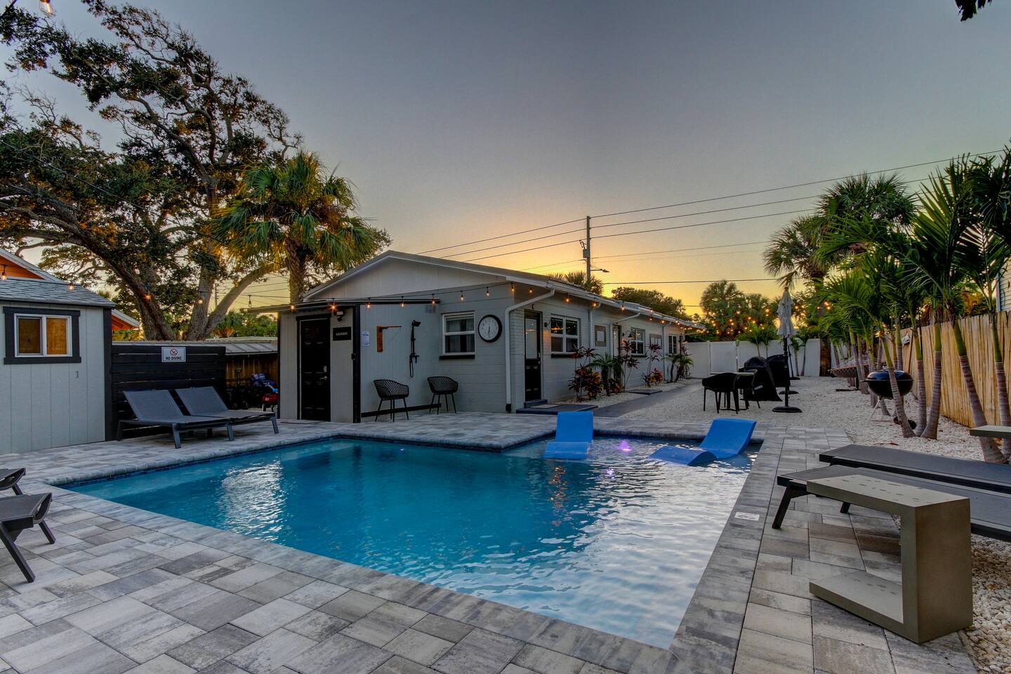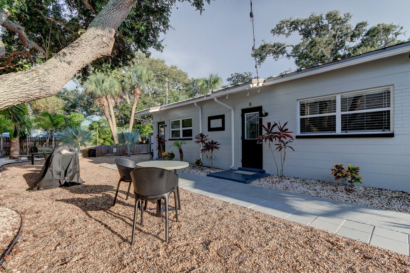 Welcome to the Jungle by My Hometown Hero Rentals Step into our serene and sunlit suite, where you'll be greeted by delightful decor that perfectly complements the stunning Indian Rocks Beach just a 2-min walk away. As one of three distinct suites, you have the option to book one, two, or all three to accommodate larger gatherings. The prime location allows you to easily stroll to an array of top-notch restaurants and charming shops in Indian Rocks Beach. Enjoy the beautiful pool, putt putt, lighted bocce ball, fire pit, and ring toss in your own back yard. This Indian Rocks Beach getaway showcases a blend of sleek leather and earthy tones to create a relaxing, modern ambiance. The stylish mid-century modern home features a leather futon, an inviting space to unwind after a day at the beach, while also providing additional sleeping accommodations for guests. The harmonious combination of contemporary furnishings and soothing color palettes is carefully curated to evoke a sense of tranquility and rejuvenation, further enhancing your memorable vacation experience. Need more than one suite? Check out our listing that includes all three adjacent suites in the triplex (sleeps up to 10)- Airbnb92700915392708842. We have two other uniquely decorated spaces- Suite B "Welcome to the Jungle" Airbnb53911426 and Suite C "Rockin Retreat" Airbnb53911427. KEY FEATURES: ☀ Brand new heated pool with sun shelf and chaise loungers (shared with 2 neighboring suites rather than an entire hotel) ☀ Easy access to the beach; just walk across the street! ☀ Fire pit with relaxing swivel lounge chairs ☀ Free Wi-Fi; Smart TVs ☀ Amazon Dots (speakers) with Unlimited Amazon Music ☀ Includes beach gear: wagons, zero gravity beach chairs, umbrellas, sand toys, beach speaker, and cooler ☀ Short walk to local seafood restaurants, shops + water sports rentals ☀ Fully stocked game closet ☀ 1 bedroom with a king-sized memory foam mattress + Smart TV ☀ 1 bathroom with shower/bath combo ☀ Fully-equipped kitchen; bistro-style table + workspace ☀ Cozy lounge with leather couch ☀ Fenced-in courtyard with outdoor seating, umbrellas, and BBQ grills (propane and charcoal) ☀ On-site laundry facility, free to use ☀ 2 suites with similar layout but custom decor next door 2 Min Walk to Indian Rocks Beach 2 Min Drive to Splash Harbour Water Park 20 Min Drive to Clearwater-St Pete Airport 40 Min Drive to Tampa International Airport Our fully-stocked, farmhouse-style kitchen truly sets this Airbnb apart, boasting brand new quartz countertops and all the essentials for crafting delicious home-cooked meals. With a wide array of spices, oil, and cookware on hand, you'll have everything you need to channel your inner chef. The stainless steel appliances, including a dishwasher, add a touch of luxury while ensuring you won't have to worry about doing dishes during your vacation. Outdoor relaxation is taken to a new level with our collection of comfortable swivel chairs and fire pit ensuring total comfort as you lounge in the coastal breeze. Challenge your travel companions to a friendly game of giant connect four or ring toss, adding an element of fun to your stay. After a sandy day at the beach, rinse off in the outdoor shower before enjoying a meal at one of our dining tables, shaded by umbrellas. Grill a fresh catch on one of the BBQ grills available for communal grilling (both gas and charcoal options). The bright bathroom features recent renovations, showcasing modern matte black fixtures and fresh tiling. You'll find both a bathtub and showerhead, as well as ample storage space for your belongings. Travel light and leave your worries behind, as we've provided plenty of beach towels, a hair dryer, and complimentary toiletries for your convenience. Step outside to discover the true gem of our vacation rental: the brand new splash pool with sun shelf surrounded by sleek chaise loungers. This unique feature not only provides a refreshing space to cool off but also adds an extra touch of luxury to your stay. The pool ensures comfort year-round, making it the perfect spot to unwind and soak up the Florida sun, no matter the season. The pool is shared between the three units rather than an entire hotel complex. With these exceptional amenities at your disposal, our Airbnb rental offers an unparalleled outdoor experience for your vacation getaway. When you decide to venture beyond the picturesque Indian Rocks Beach, you'll find a myriad of attractions and activities nearby to keep you entertained. Explore the stunning Florida Botanical Gardens, just a short drive away, where you can stroll through lush landscapes and discover local flora and fauna. For art enthusiasts, the Dali Museum in St. Petersburg offers a unique cultural experience, housing an extensive collection of Salvador Dali's works. If you're looking for an adrenaline rush, head to Busch Gardens Tampa Bay, where thrilling roller coasters and family-friendly rides await. For nature lovers, Caladesi Island State Park is the perfect destination to unwind and explore pristine beaches, mangroves, and nature trails. With so many attractions and activities to choose from, your stay at Indian Rocks Beach is bound to be a memorable experience filled with fun, relaxation, and adventure. Don't wait – book your stay today and uncover the beauty of Indian Rocks Beach and its surroundings!