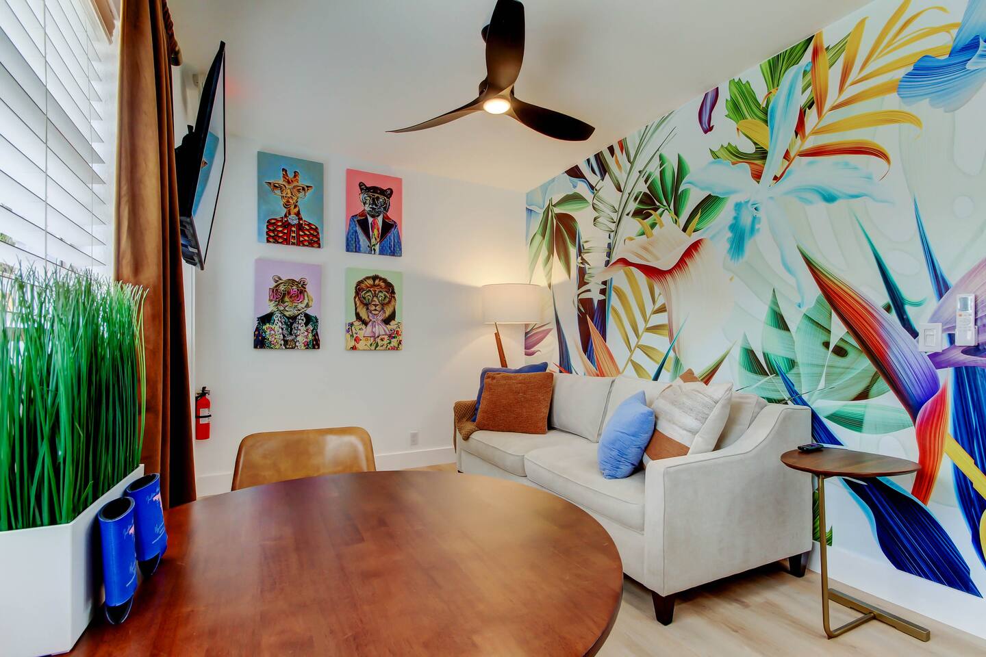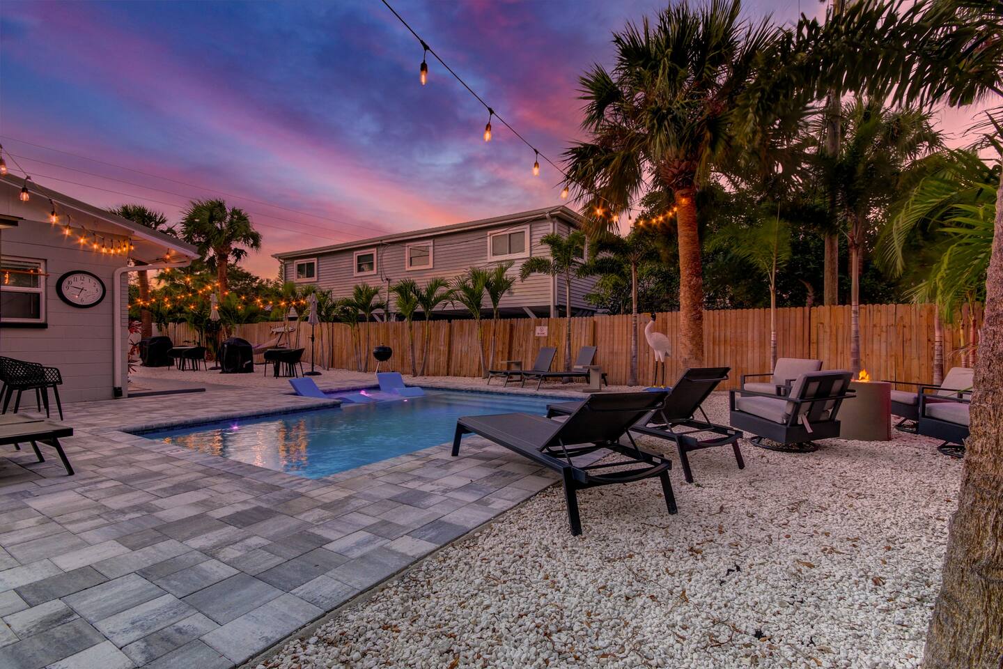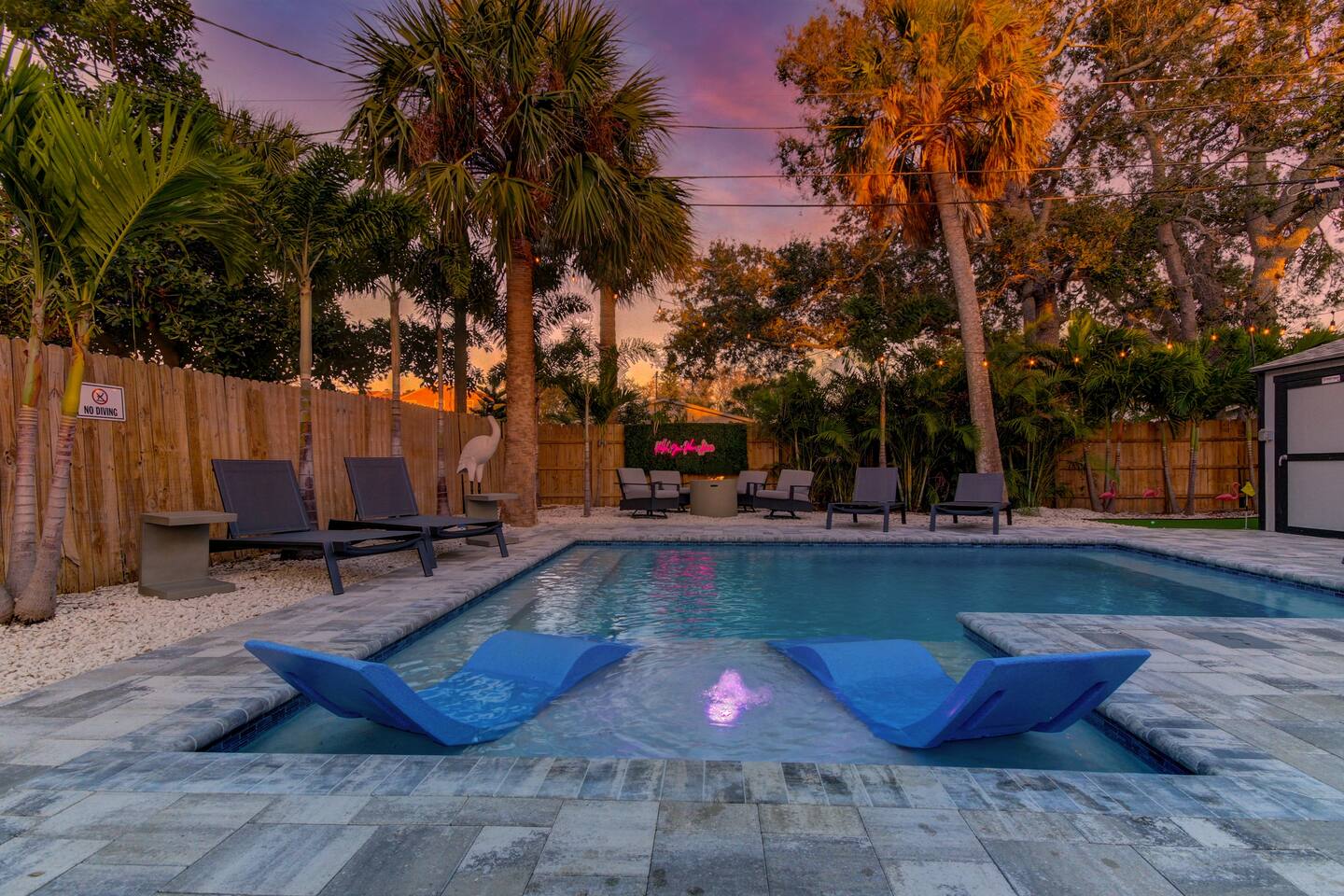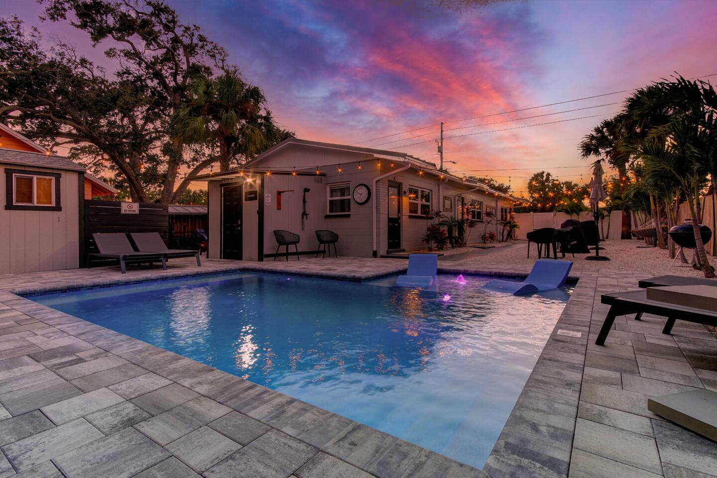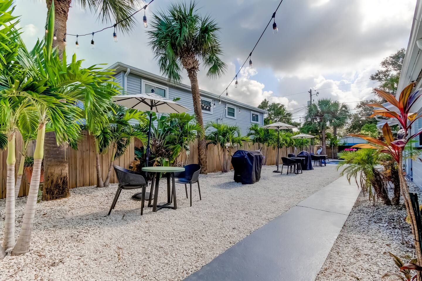 Welcome to the Jungle by My Hometown Hero Rentals Step into our serene and sunlit suite, where you'll be greeted by delightful decor that perfectly complements the stunning Indian Rocks Beach just a 2-min walk away. As one of three distinct suites, you have the option to book one, two, or all three to accommodate larger gatherings. The prime location allows you to easily stroll to an array of top-notch restaurants and charming shops in Indian Rocks Beach. Enjoy the beautiful pool, putt putt, lighted bocce ball, fire pit, and ring toss in your own back yard. This Indian Rocks Beach getaway showcases a blend of sleek leather and earthy tones to create a relaxing, modern ambiance. The stylish mid-century modern home features a leather futon, an inviting space to unwind after a day at the beach, while also providing additional sleeping accommodations for guests. The harmonious combination of contemporary furnishings and soothing color palettes is carefully curated to evoke a sense of tranquility and rejuvenation, further enhancing your memorable vacation experience. Need more than one suite? Check out our listing that includes all three adjacent suites in the triplex (sleeps up to 10)- Airbnb92700915392708842. We have two other uniquely decorated spaces- Suite B "Welcome to the Jungle" Airbnb53911426 and Suite C "Rockin Retreat" Airbnb53911427. KEY FEATURES: ☀ Brand new heated pool with sun shelf and chaise loungers (shared with 2 neighboring suites rather than an entire hotel) ☀ Easy access to the beach; just walk across the street! ☀ Fire pit with relaxing swivel lounge chairs ☀ Free Wi-Fi; Smart TVs ☀ Amazon Dots (speakers) with Unlimited Amazon Music ☀ Includes beach gear: wagons, zero gravity beach chairs, umbrellas, sand toys, beach speaker, and cooler ☀ Short walk to local seafood restaurants, shops + water sports rentals ☀ Fully stocked game closet ☀ 1 bedroom with a king-sized memory foam mattress + Smart TV ☀ 1 bathroom with shower/bath combo ☀ Fully-equipped kitchen; bistro-style table + workspace ☀ Cozy lounge with leather couch ☀ Fenced-in courtyard with outdoor seating, umbrellas, and BBQ grills (propane and charcoal) ☀ On-site laundry facility, free to use ☀ 2 suites with similar layout but custom decor next door 2 Min Walk to Indian Rocks Beach 2 Min Drive to Splash Harbour Water Park 20 Min Drive to Clearwater-St Pete Airport 40 Min Drive to Tampa International Airport Our fully-stocked, farmhouse-style kitchen truly sets this Airbnb apart, boasting brand new quartz countertops and all the essentials for crafting delicious home-cooked meals. With a wide array of spices, oil, and cookware on hand, you'll have everything you need to channel your inner chef. The stainless steel appliances, including a dishwasher, add a touch of luxury while ensuring you won't have to worry about doing dishes during your vacation. Outdoor relaxation is taken to a new level with our collection of comfortable swivel chairs and fire pit ensuring total comfort as you lounge in the coastal breeze. Challenge your travel companions to a friendly game of giant connect four or ring toss, adding an element of fun to your stay. After a sandy day at the beach, rinse off in the outdoor shower before enjoying a meal at one of our dining tables, shaded by umbrellas. Grill a fresh catch on one of the BBQ grills available for communal grilling (both gas and charcoal options). The bright bathroom features recent renovations, showcasing modern matte black fixtures and fresh tiling. You'll find both a bathtub and showerhead, as well as ample storage space for your belongings. Travel light and leave your worries behind, as we've provided plenty of beach towels, a hair dryer, and complimentary toiletries for your convenience. Step outside to discover the true gem of our vacation rental: the brand new splash pool with sun shelf surrounded by sleek chaise loungers. This unique feature not only provides a refreshing space to cool off but also adds an extra touch of luxury to your stay. The pool ensures comfort year-round, making it the perfect spot to unwind and soak up the Florida sun, no matter the season. The pool is shared between the three units rather than an entire hotel complex. With these exceptional amenities at your disposal, our Airbnb rental offers an unparalleled outdoor experience for your vacation getaway. When you decide to venture beyond the picturesque Indian Rocks Beach, you'll find a myriad of attractions and activities nearby to keep you entertained. Explore the stunning Florida Botanical Gardens, just a short drive away, where you can stroll through lush landscapes and discover local flora and fauna. For art enthusiasts, the Dali Museum in St. Petersburg offers a unique cultural experience, housing an extensive collection of Salvador Dali's works. If you're looking for an adrenaline rush, head to Busch Gardens Tampa Bay, where thrilling roller coasters and family-friendly rides await. For nature lovers, Caladesi Island State Park is the perfect destination to unwind and explore pristine beaches, mangroves, and nature trails. With so many attractions and activities to choose from, your stay at Indian Rocks Beach is bound to be a memorable experience filled with fun, relaxation, and adventure. Don't wait – book your stay today and uncover the beauty of Indian Rocks Beach and its surroundings!