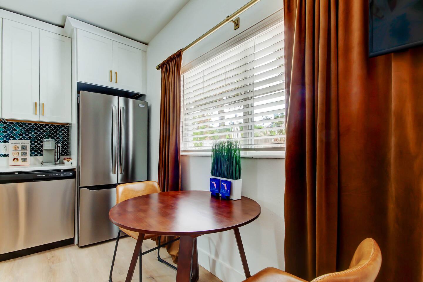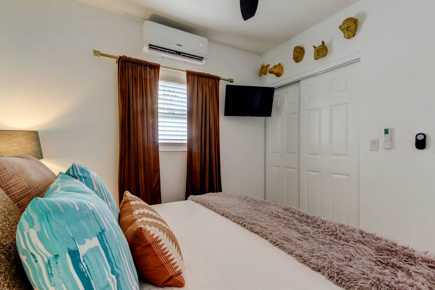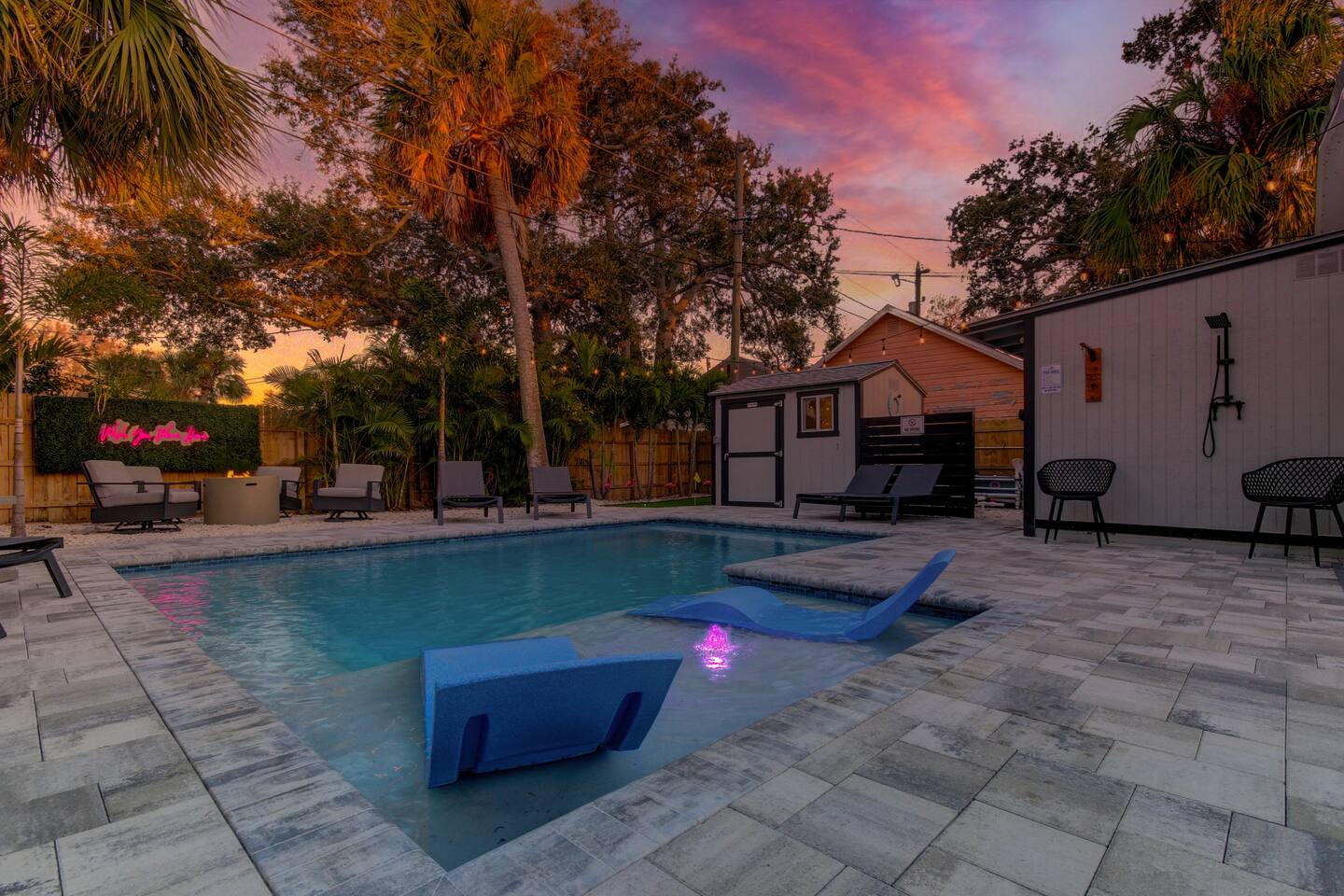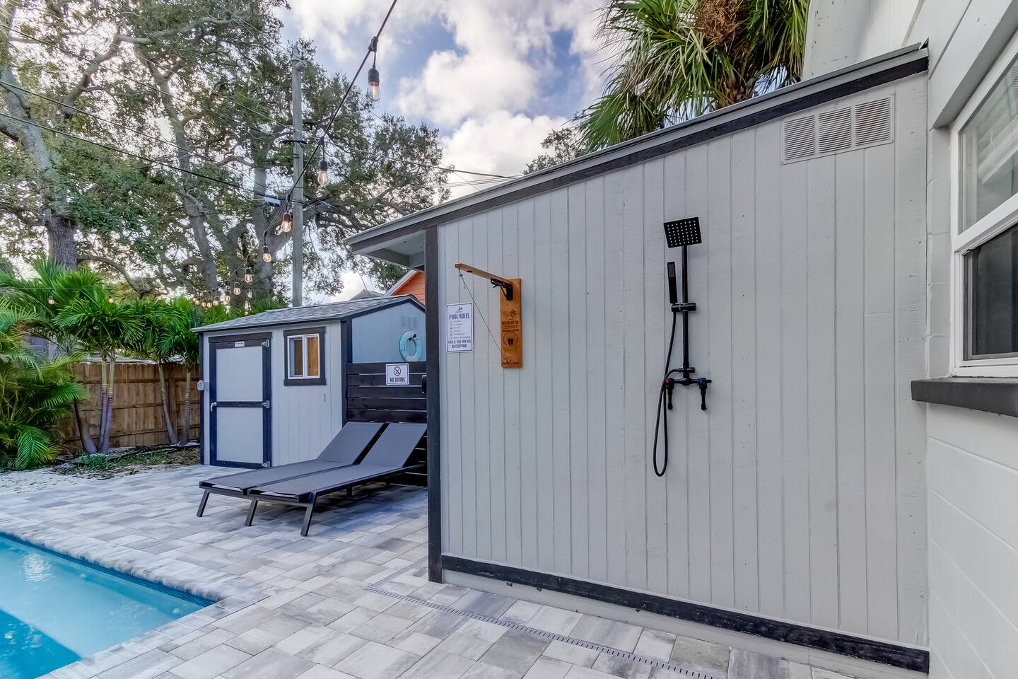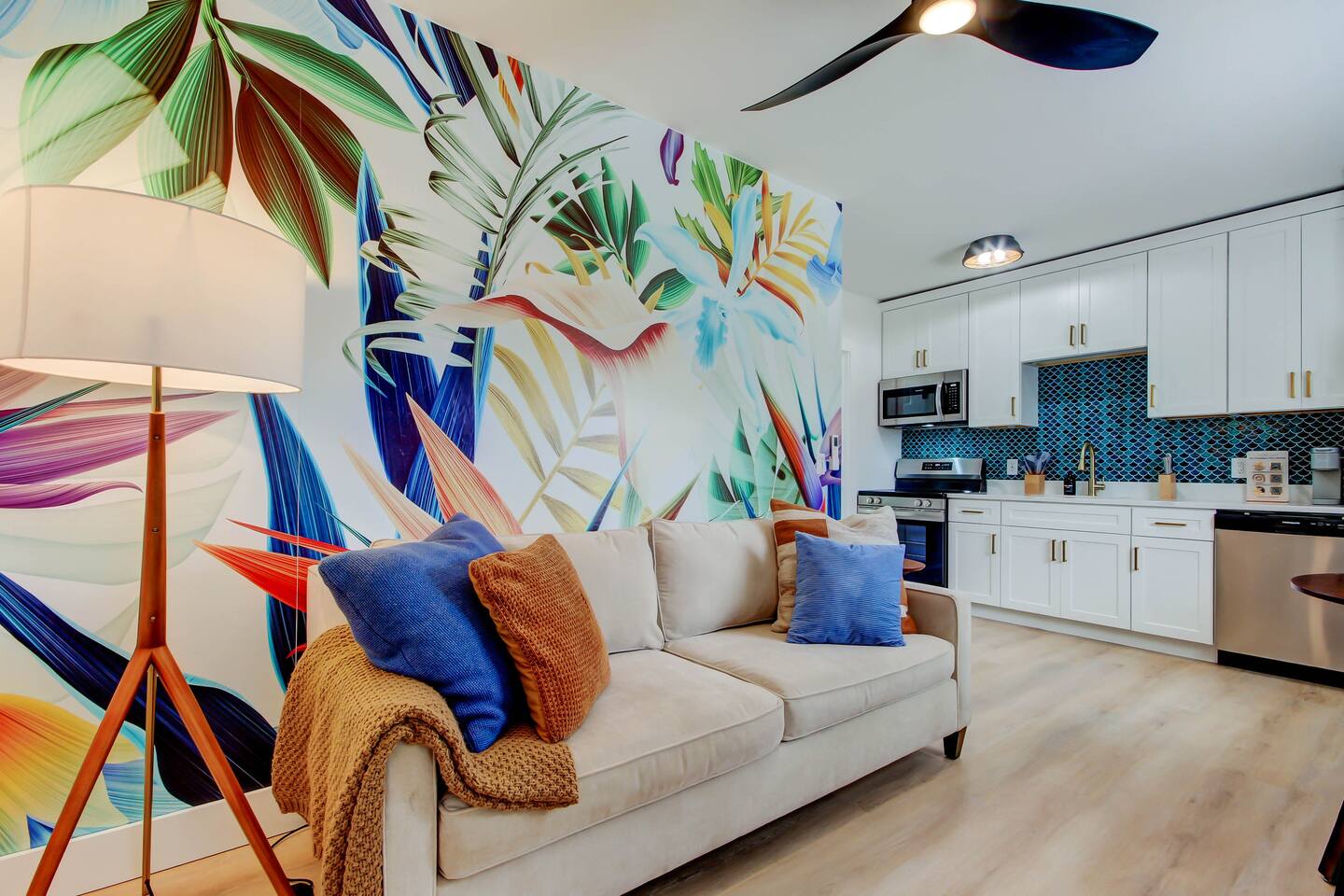Welcome to the Jungle by My Hometown Hero Rentals Step into our serene and sunlit suite, where you'll be greeted by delightful decor that perfectly complements the stunning Indian Rocks Beach just a 2-min walk away. As one of three distinct suites, you have the option to book one, two, or all three to accommodate larger gatherings. The prime location allows you to easily stroll to an array of top-notch restaurants and charming shops in Indian Rocks Beach. Enjoy the beautiful pool, putt putt, lighted bocce ball, fire pit, and ring toss in your own back yard. This Indian Rocks Beach getaway showcases a blend of sleek leather and earthy tones to create a relaxing, modern ambiance. The stylish mid-century modern home features a leather futon, an inviting space to unwind after a day at the beach, while also providing additional sleeping accommodations for guests. The harmonious combination of contemporary furnishings and soothing color palettes is carefully curated to evoke a sense of tranquility and rejuvenation, further enhancing your memorable vacation experience. Need more than one suite? Check out our listing that includes all three adjacent suites in the triplex (sleeps up to 10)- Airbnb92700915392708842. We have two other uniquely decorated spaces- Suite B "Welcome to the Jungle" Airbnb53911426 and Suite C "Rockin Retreat" Airbnb53911427. KEY FEATURES: ☀ Brand new heated pool with sun shelf and chaise loungers (shared with 2 neighboring suites rather than an entire hotel) ☀ Easy access to the beach; just walk across the street! ☀ Fire pit with relaxing swivel lounge chairs ☀ Free Wi-Fi; Smart TVs ☀ Amazon Dots (speakers) with Unlimited Amazon Music ☀ Includes beach gear: wagons, zero gravity beach chairs, umbrellas, sand toys, beach speaker, and cooler ☀ Short walk to local seafood restaurants, shops + water sports rentals ☀ Fully stocked game closet ☀ 1 bedroom with a king-sized memory foam mattress + Smart TV ☀ 1 bathroom with shower/bath combo ☀ Fully-equipped kitchen; bistro-style table + workspace ☀ Cozy lounge with leather couch ☀ Fenced-in courtyard with outdoor seating, umbrellas, and BBQ grills (propane and charcoal) ☀ On-site laundry facility, free to use ☀ 2 suites with similar layout but custom decor next door 2 Min Walk to Indian Rocks Beach 2 Min Drive to Splash Harbour Water Park 20 Min Drive to Clearwater-St Pete Airport 40 Min Drive to Tampa International Airport Our fully-stocked, farmhouse-style kitchen truly sets this Airbnb apart, boasting brand new quartz countertops and all the essentials for crafting delicious home-cooked meals. With a wide array of spices, oil, and cookware on hand, you'll have everything you need to channel your inner chef. The stainless steel appliances, including a dishwasher, add a touch of luxury while ensuring you won't have to worry about doing dishes during your vacation. Outdoor relaxation is taken to a new level with our collection of comfortable swivel chairs and fire pit ensuring total comfort as you lounge in the coastal breeze. Challenge your travel companions to a friendly game of giant connect four or ring toss, adding an element of fun to your stay. After a sandy day at the beach, rinse off in the outdoor shower before enjoying a meal at one of our dining tables, shaded by umbrellas. Grill a fresh catch on one of the BBQ grills available for communal grilling (both gas and charcoal options). The bright bathroom features recent renovations, showcasing modern matte black fixtures and fresh tiling. You'll find both a bathtub and showerhead, as well as ample storage space for your belongings. Travel light and leave your worries behind, as we've provided plenty of beach towels, a hair dryer, and complimentary toiletries for your convenience. Step outside to discover the true gem of our vacation rental: the brand new splash pool with sun shelf surrounded by sleek chaise loungers. This unique feature not only provides a refreshing space to cool off but also adds an extra touch of luxury to your stay. The pool ensures comfort year-round, making it the perfect spot to unwind and soak up the Florida sun, no matter the season. The pool is shared between the three units rather than an entire hotel complex. With these exceptional amenities at your disposal, our Airbnb rental offers an unparalleled outdoor experience for your vacation getaway. When you decide to venture beyond the picturesque Indian Rocks Beach, you'll find a myriad of attractions and activities nearby to keep you entertained. Explore the stunning Florida Botanical Gardens, just a short drive away, where you can stroll through lush landscapes and discover local flora and fauna. For art enthusiasts, the Dali Museum in St. Petersburg offers a unique cultural experience, housing an extensive collection of Salvador Dali's works. If you're looking for an adrenaline rush, head to Busch Gardens Tampa Bay, where thrilling roller coasters and family-friendly rides await. For nature lovers, Caladesi Island State Park is the perfect destination to unwind and explore pristine beaches, mangroves, and nature trails. With so many attractions and activities to choose from, your stay at Indian Rocks Beach is bound to be a memorable experience filled with fun, relaxation, and adventure. Don't wait – book your stay today and uncover the beauty of Indian Rocks Beach and its surroundings!