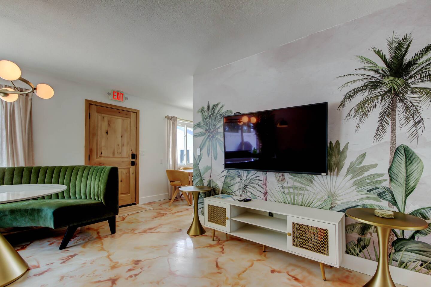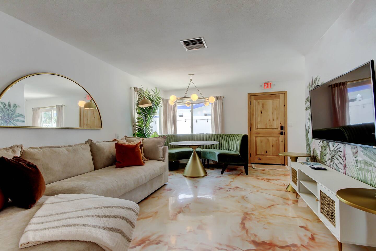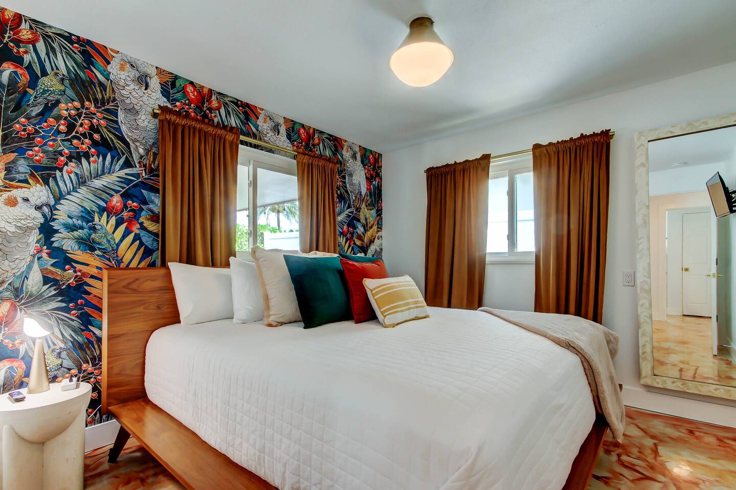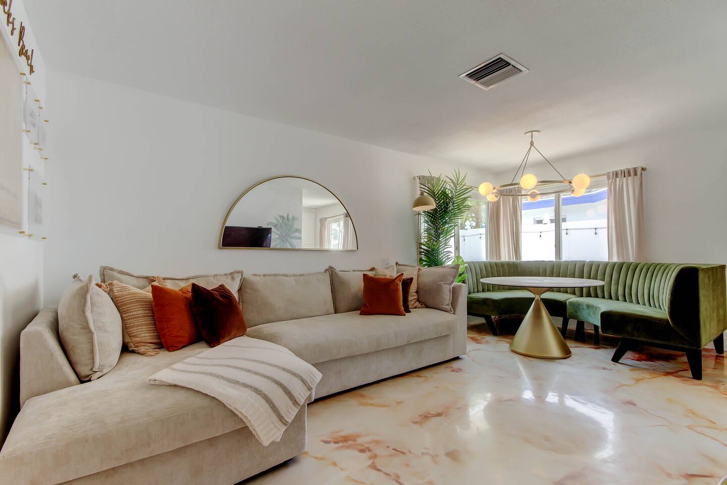 Sunset Suite by My Hometown Hero Rentals Experience waterfront living at its best! Staying at Dolphin Bay on the Rocks offers a luxurious vacation paradise with breathtaking views. As one of two distinct adjacent suites each can sleep up to 6 guests and can be booked independently or together. This listing is for one half of the duplex (private interiors and shared exterior spaces). Spend your days soaking up the sun and breathing in salty air while gazing out onto the bay, or take advantage of the nearby beach access to explore Indian Rocks Beach. For a more contemporary aesthetic, this rental boasts updated furniture and modern epoxy floors; as well as quartz kitchen and bathroom countertops for a touch of luxury. Enjoy an indulgent stay by taking advantage of our extensive coffee bar that includes a Nespresso Vertuo, Keurig, traditional drip coffee maker, frother, coffee grinder with fresh Equal Exchange beans, and french press. No need to leave this spectacular view- even for coffee! Dates not available? Try Sunrise Suite Airbnb902429731161317818. Need to book both suites? Dolphin Bay on the Rocks Airbnb962595161527289151 When you stay in one of our ocean front suites, you'll experience a combination of mid century modern and coastal contemporary design. Each bedroom features a king-sized bed with memory foam mattresses for the utmost relaxation, as well as a designated contemporary workspace so you can work from your vacation destination. The rooms boast eye popping colors paired with luxurious velvet and timeless leather, creating an updated and clean vibe perfect for the modern-day guest. Beach bikes, kayaks, stand-up paddle boards, zero gravity beach chairs, beach wagons, beach towels, bluetooth speaker, and umbrellas are provided for your stay. The sugary sands of Indian Rocks Beach beach is a mere 3 blocks away. Get lost in a beautiful, indulgent escape overlooking the bay with spectacular views. Take a dip in the hot tub and let go of all stress as you relax. Play glow in the dark bocce ball, giant Jenga, ringtoss and cornhole with family or friends. Try your luck fishing off of the dock or venture out in the kayak with one of the provided fishing poles. Allow yourselves plenty of time to fully indulge in an exquisite experience at your beautiful escape overlooking the bay! *Please note ALL exterior amenities are shared with the adjacent duplex. If you would to book both sides of the duplex please see- Dolphin Bay on the Rocks Airbnb962595161527289151 Each side of the duplex has a separate, private entrance and interior spaces are not shared between the suites. KEY FEATURES: ☀ 2 bedrooms with a king-sized memory foam mattress + Smart TV; queen sleeper sofa to accommodate up to six guests ☀ 1 spacious completely renovated bathroom w/ tile shower ☀ Fully-equipped kitchen with high end Caraway cookware and bakeware; dining room table and separate breakfast nook with banquette seating ☀ Leather Chaise in living room; two twin roll away beds available to accommodate up to 6 guests ☀ Oceanview hot tub and chaise loungers; dockside adorandak chairs ☀ laundry room within unit ☀ Free wifi; Smart TVs ☀ Amazon Dots (speakers) with Unlimited Amazon Music, Bluetooth Beach Speakers ☀ Easy access to the beach; less than a quarter mile from property ☀ Includes beach gear: wagons, zero gravity chairs, umbrellas, beach towels, and cooler ☀ Short walk to local seafood restaurants, shops + water sports rentals ☀ unit next door with contemporary coastal design and similar layout can accommodate up to 6 additional guests BTR #2171