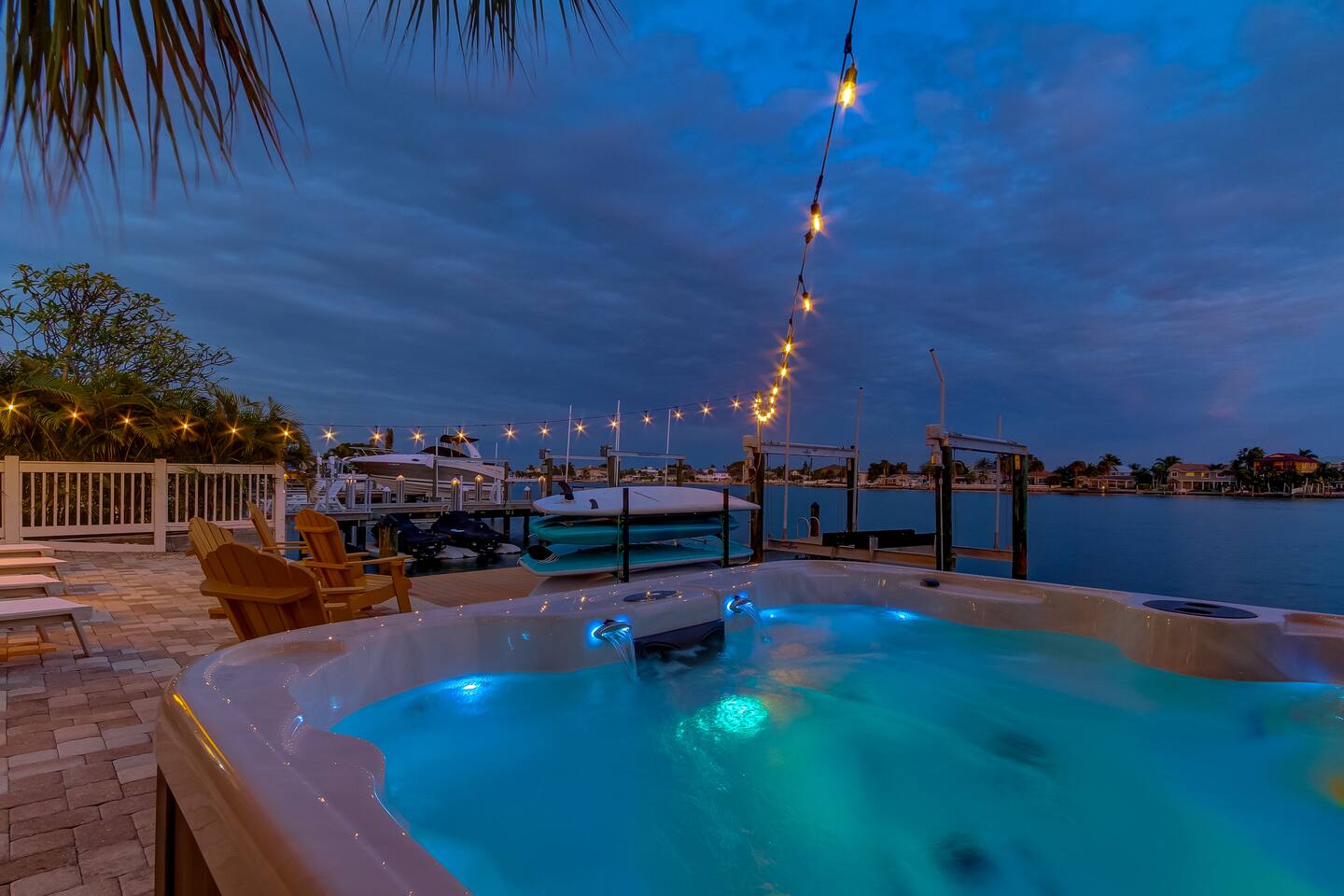 ☀ Bay Views ☀ Shared Hot Tub ☀ Dock with Stand-up Paddle boards, Kayaks, Bikes ☀ Only 3 blocks to the sugary sands of Indian Rocks Beach ☀ Duplex- book independently or together ☀ Blackstone, 6 burner Charbroil Grill ☀ 10 Foot Custom Wood Bar w/ Jenga, Giant Connect 4, Corn Hole, Ringtoss ☀ Beach Wagons, Speaker, Zero Gravity beach chairs, beach towels, cooler ☀ Amazon Dot with Unlimited Amazon Music